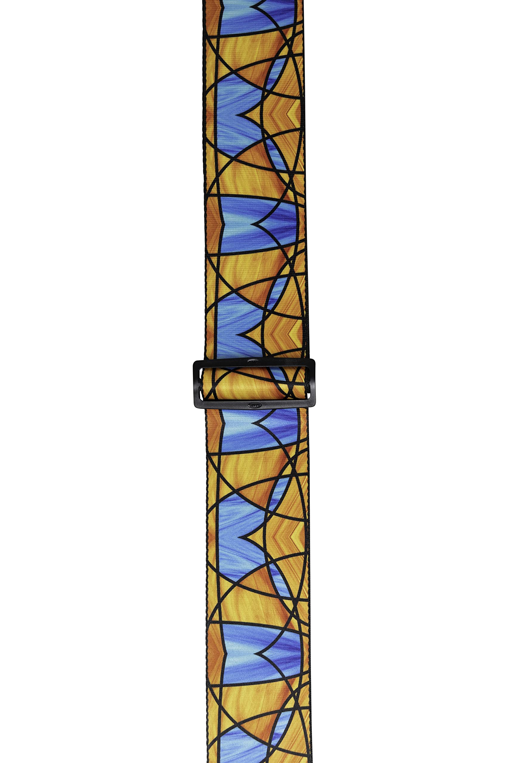- Levy's 3" Wide Polypropylene Guitar Strap With Stained Glass Design In Orange and Blue