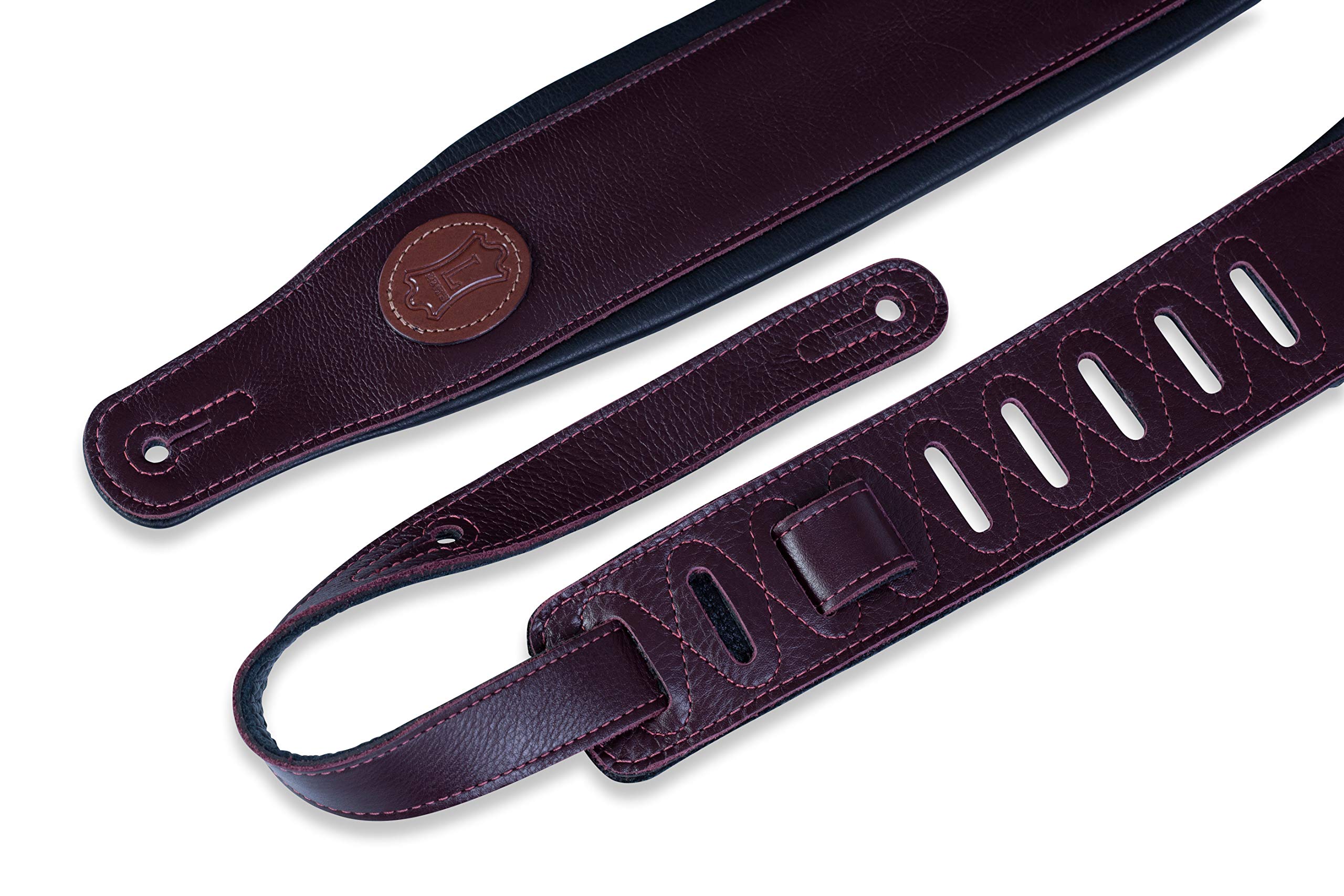 - 3ā Burgundy garment leather padded guitar strap | Adjustable from 37ā to 51ā in length